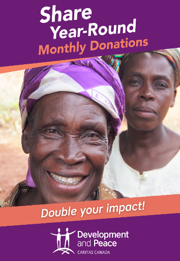 A monthly donation allows Development and Peace – Caritas Canada to plan its long-term support for the people of the Global South and to reduce its administrative costs. Being a Share Year-Round donor simply means acting for social justice and human dignity all year long.