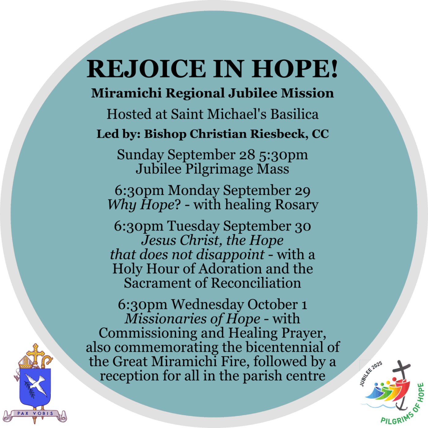 Jubilee 2025 Pilgrims of Hope – Jubilee Pilgrimage to the Cathedral of the Immaculate Conception. There will be a Pilgrimage of Hope to the Cathedral on the first Saturdays in the month throughout the year. The next date is April 5th. Everyone is welcome to attend any Pilgrimages throughout the year including those designated for specific regions. The designated date for our Parish Group to participate in a Pilgrimage to the Cathedral has been scheduled for Saturday, July 5th. This group includes St. John the Baptist Parish (Woodstock/Nackawic); St. Barbara’s Parish (Minto/Chipman): Mother of Mercy Parish (Johnsville/Bath/Florenceville/Juniper); and St. John Paul II (Oromocto/Lincoln/Village of Gagetown). More information to follow.